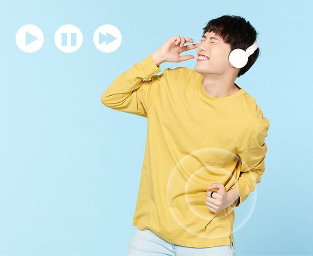 スマホやタブレットで動画視聴や音楽を聴く時も、再生や停止、先送りを【スマートリングSO+】で簡単にリモコン操作。