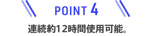 小さなボディに高性能バッテリーと省エネ機能で連続約12時間も使用が可能。