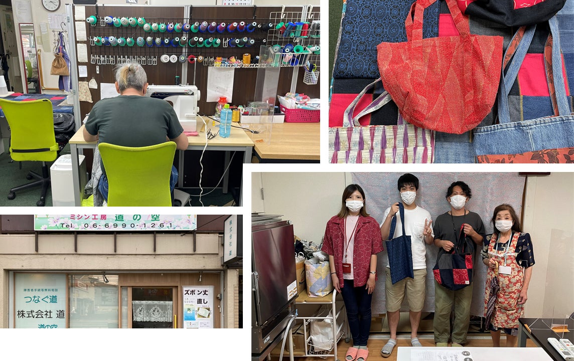 道の空は,普段,寄付された着物や古布を,ミシンを使いリメイクし商品化して販売しています。利用者(障がいのある方)さんで,ミシンに興味のない方や,軽作業が好きな方には,内職作業を行ってもらっています。