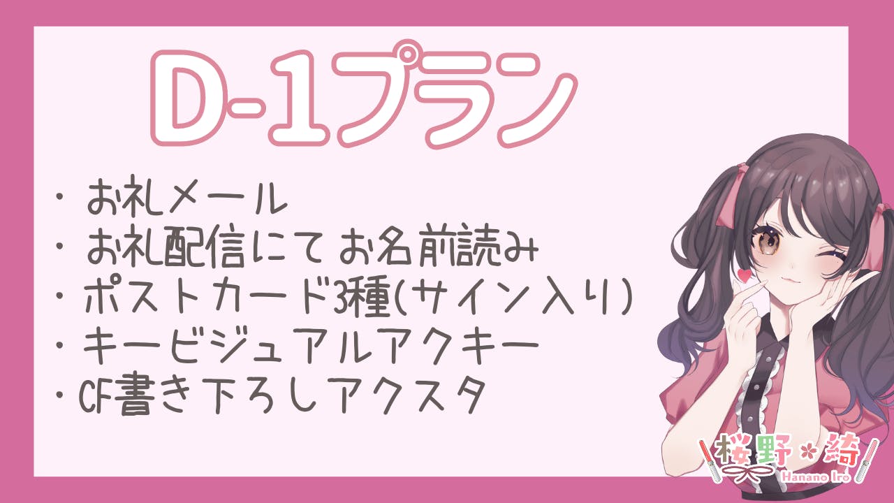 花咲りね様書き下ろしのイラストをクラファン限定でアクリルスタンドにして郵送でお届けさせていただきます。