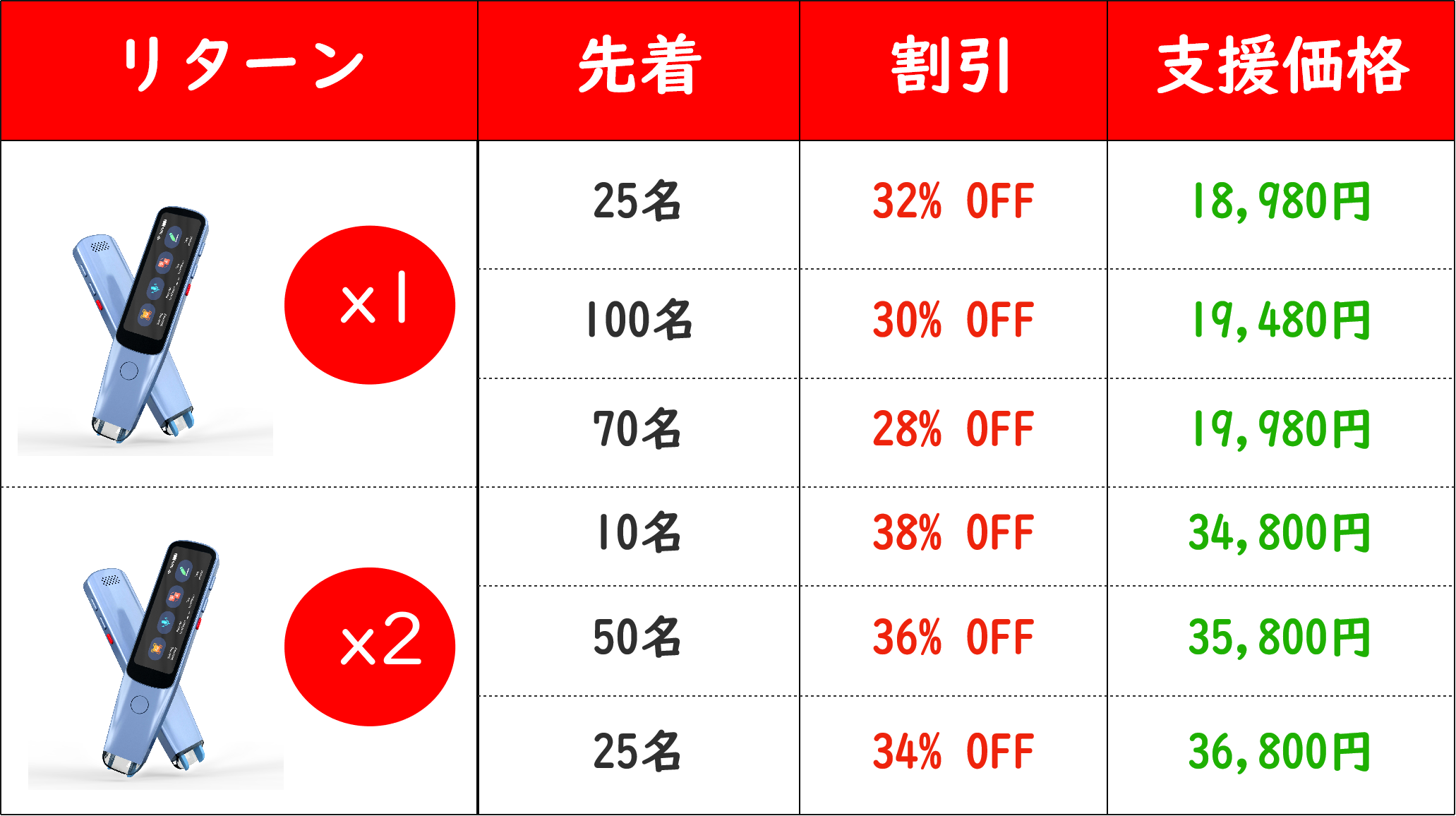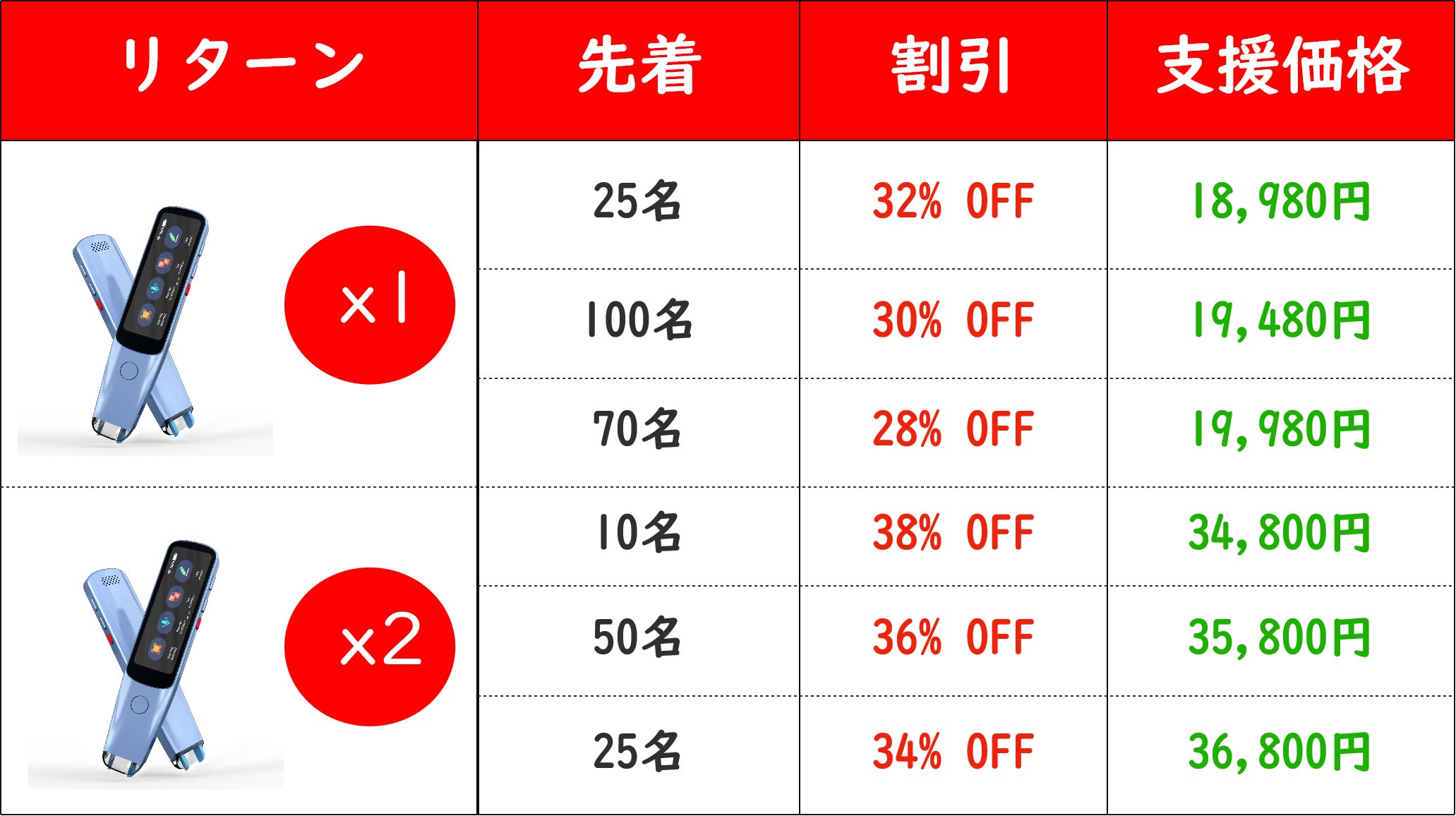 ※想定を上回る皆様からご支援を頂き、量産体制を更に充実させることができた場合、一般販売価格が予定価格を下回る可能性がございます。