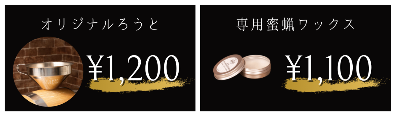 ※オプションのセット(ろうと+ワックス)リターンは少しお得な2,200円でご用意しております。