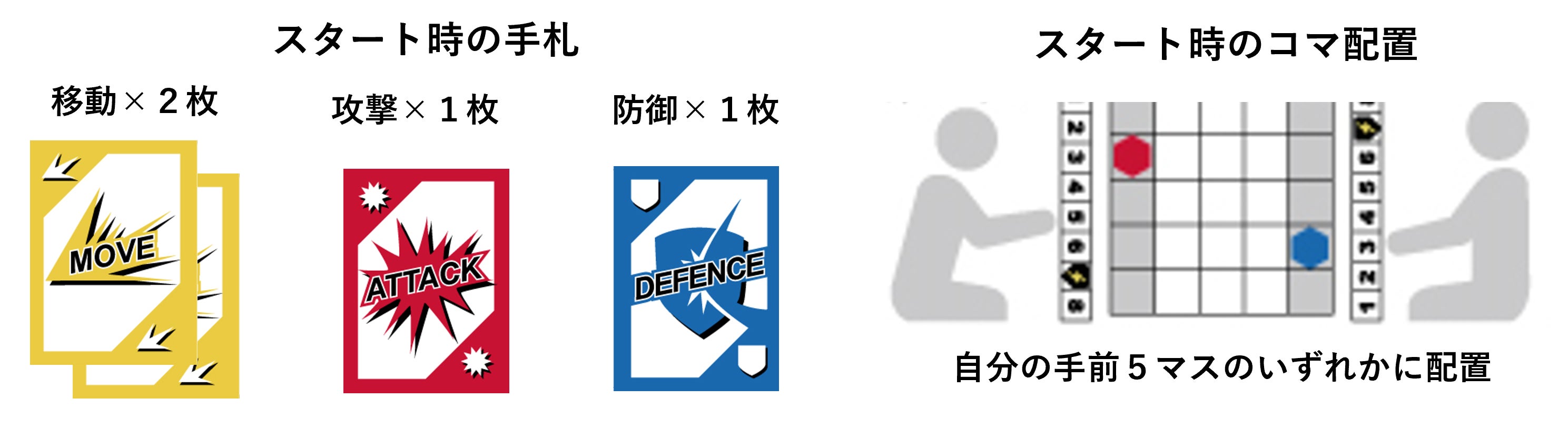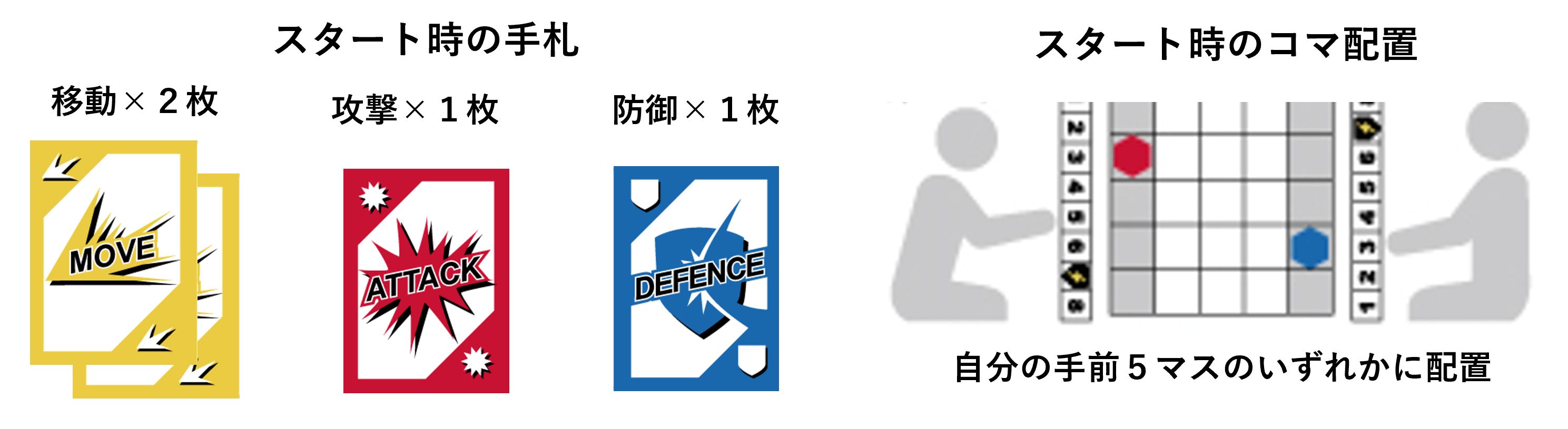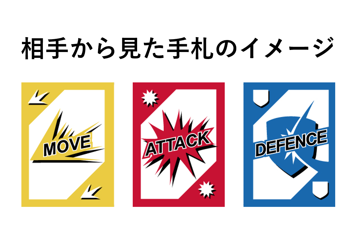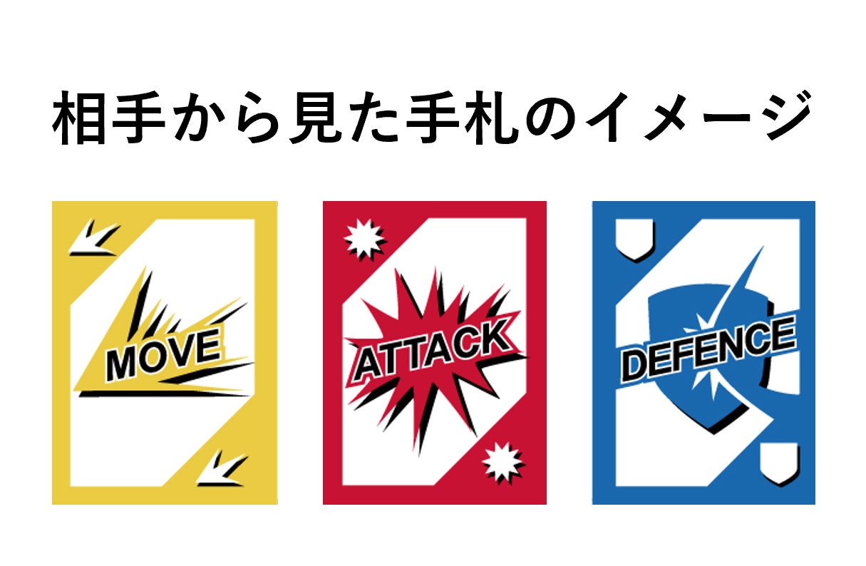 手札の”種類”は相手からも確認ができる状態になっているので、一気に攻撃を仕掛けるべきか、しっかり態勢を整えるべきか、戦況を把握しながら行動しましょう。