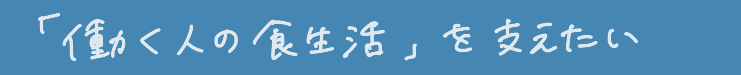 すべての「働く人」が心地よく過ごせる環境があること=働く人の食生活を支えることにつながっていきます。利用するお客様だけが満足する環境ではなく、提供する側も含め関わるすべての人にとって充実した環境が整うことが「地域の活性化」にもつながっていくはずです。