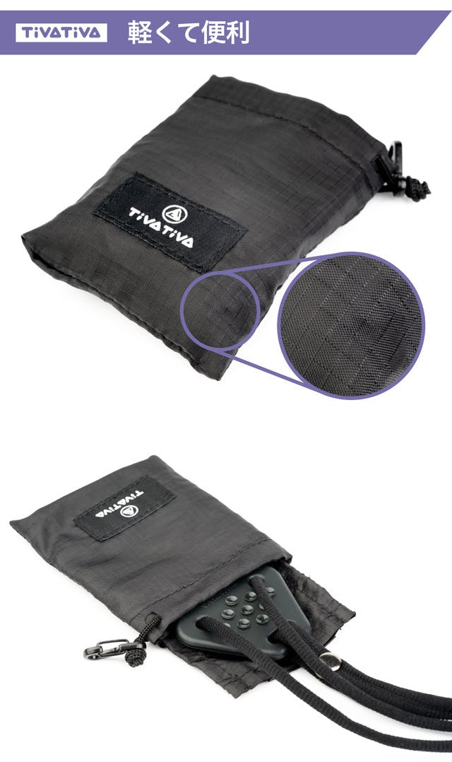 持ち運びにも便利なケース兼ポケットは、外での利用を考え汚れや水にも強い素材で作られています。