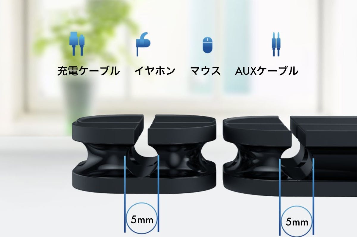 ごちゃつきがちなデスクまわりの配線を 簡単&スマートに整理できるケーブルオーガナイザーです。デスクに穴を開けることなく様々なケーブルを固定できます。