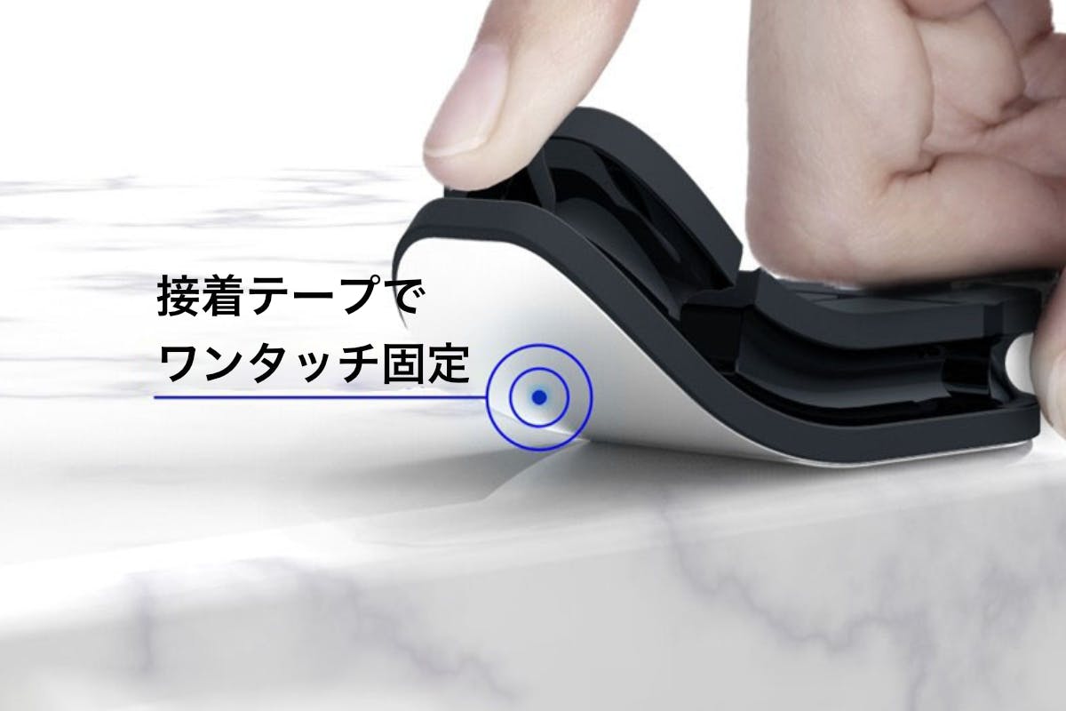 あらゆる素材に対応できる接着テープを採用しています。今あるデスクに傷や穴をあけることなく自由に装着することが可能です。