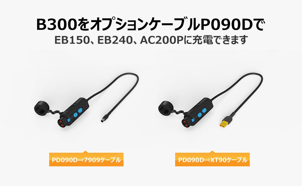 A10: オプションのケーブルがあれば、BLUETTI B300 はAC200MAX / AC200 / EB240 / EB150に充電が可能です。恐れ入りますが、EB70 / EB55に使用できないです。