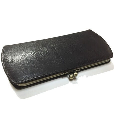 ・栃木レザーを使用しての手縫いがま口ロングウォレット