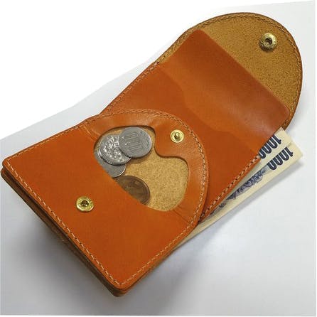 ・栃木レザーを使用しての手縫いがま口二つ折りウォレット