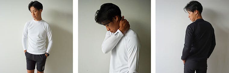 SLDO.のポロシャツとモックネックはkurarayの「SPACEMASTER-UV」という生地を使用しています。