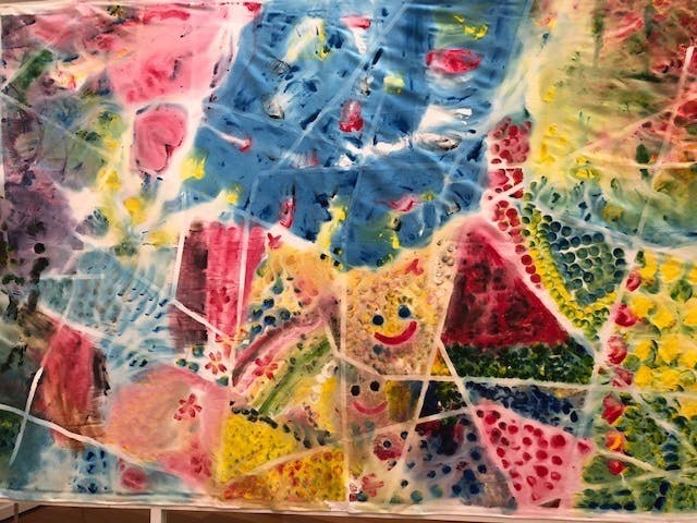 ご自宅や学校ではできないアートを全身を使って楽しんでいます。