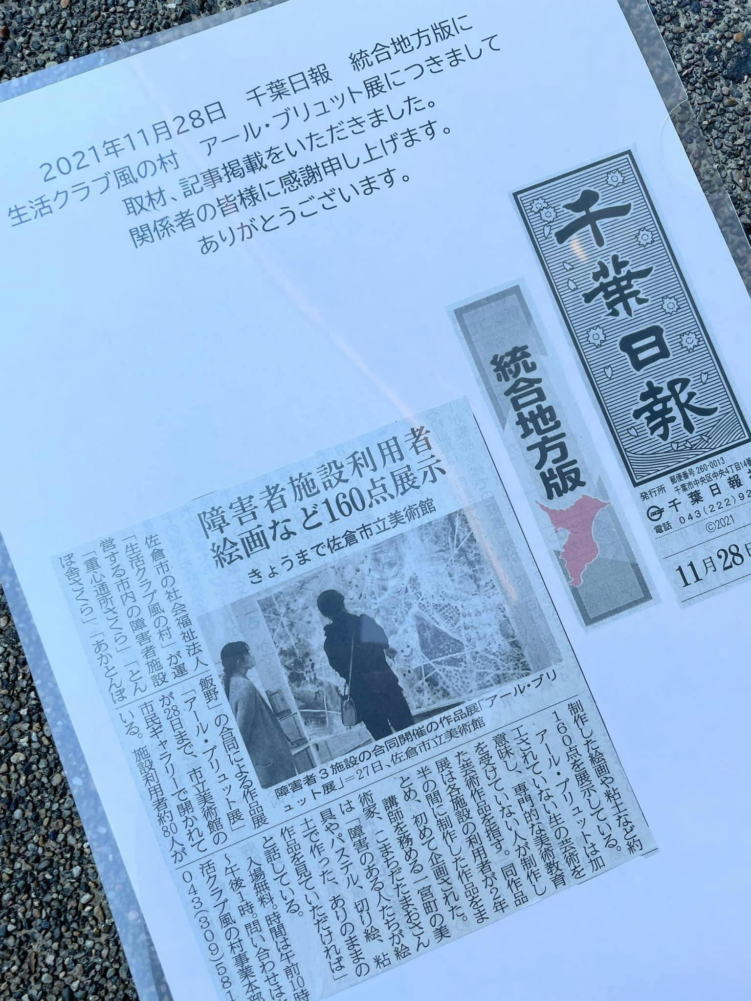 2021/11/28 10:45本日11月28日、展示最終日です。千葉日報 統合地方版に取材・記事掲載していただきました。本日の朝刊に掲載されております。関係者のみなさまに感謝申し上げます。ありがとうございました。本日は搬出作業のため13時までの開場となっております。残り数時間となりましたが、どうぞよろしくお願いいたします! もっと見る