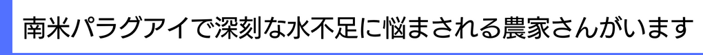 水は、全ての人が生きるために必要なものです。農業国であるパラグアイでは多くの方が農業に従事しています。それゆえ、水は彼らの生活にとって不可欠なものです。