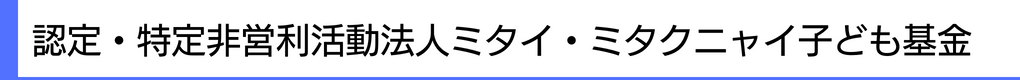 特定非営利活動法人ミタイ・ミタクニャイ子ども基金は認定NPO法人です。このプロジェクトへのご支援は寄付金控除の対象となります。本基金が寄付金の受付及び領収証発行を行います。