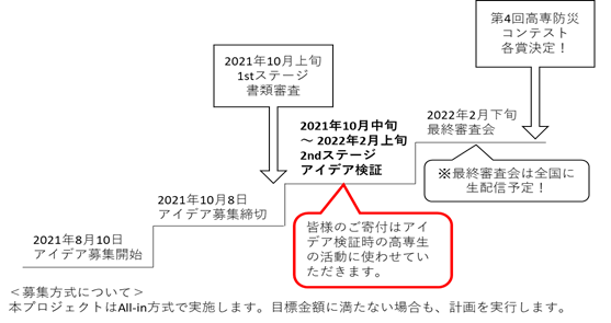 このプロジェクトでは、全国各地の高専から選ばれた最大10チームが実際に自分たちが考えた地域防災のアイデアの実現にトライする活動(アイデア検証)を行います。