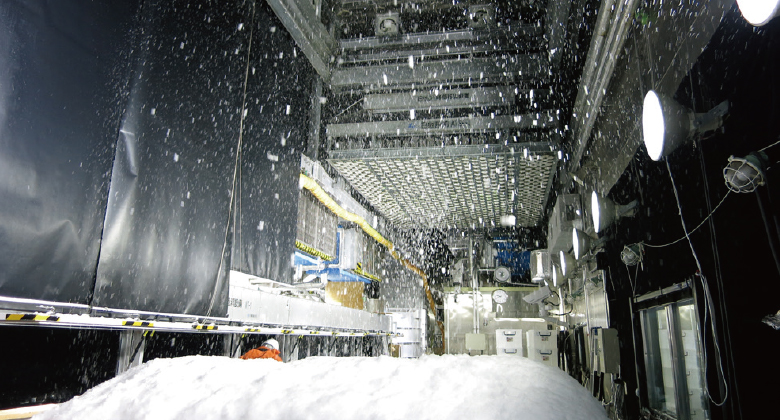 例えば、第3回高専防災コンテストの最優秀賞(教職員部門)となった長野高専の柳澤准教授と高専生のチームが提案した除雪や着雪に関わるテーマは、防災科研の研究者との共同研究に発展し、夏でも雪を降らせて冬の環境を再現できる防災科研の実験施設(山形県新庄市の雪氷防災研究センター新庄雪氷環境実験所)で社会実装に向けた研究が続けられています。