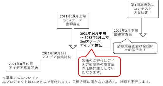 これまで本コンテストでは、参加チームの活動経費をサポートするために、防災関連企業の皆様を中心にご寄付をお願いして参りました。本年度は、コンテストについてより多くの皆様に知っていただき、高専生の活動をさらに活発化させるためのご支援をお願いしたいと考え、クラウドファンディングを立ち上げました。