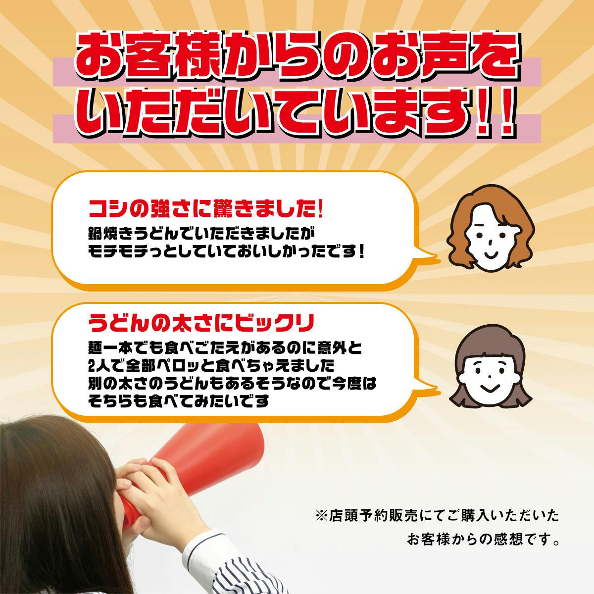 鍋焼きうどんで頂きましたがモチモチっとしていて美味しかったです(50代・女性)
