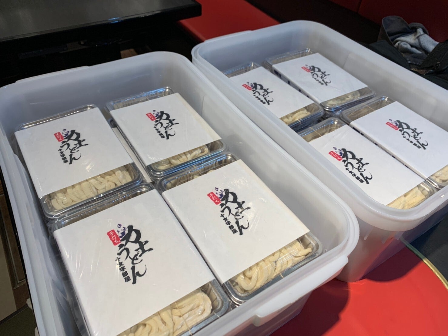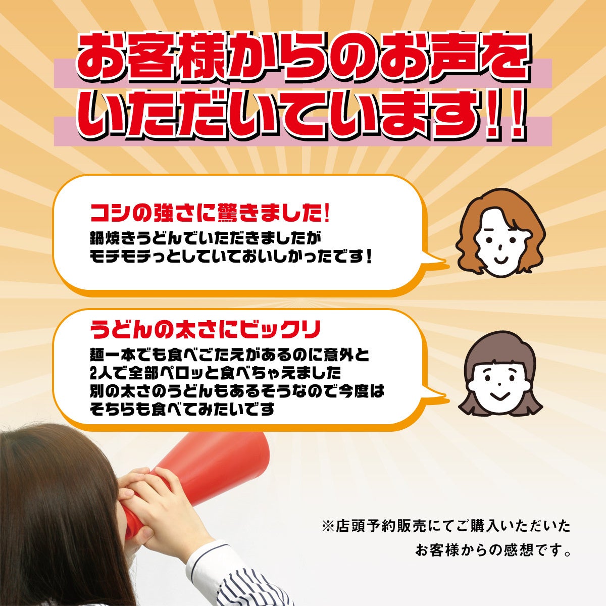 出店は中断していましたが、お客様にお召し上がり頂く事はできないかと思い、2020年12月に「年越し力士うどん」としてちゃんこ霧島・ジンギスカン霧島で限定発売したところ、お客様よりまた食べたいと好評を受け、現在は本場所開催の2ヶ月に一度、大相撲開催のご当地にちなんだ太さで店頭のみの予約販売にて力士うどんを販売しております