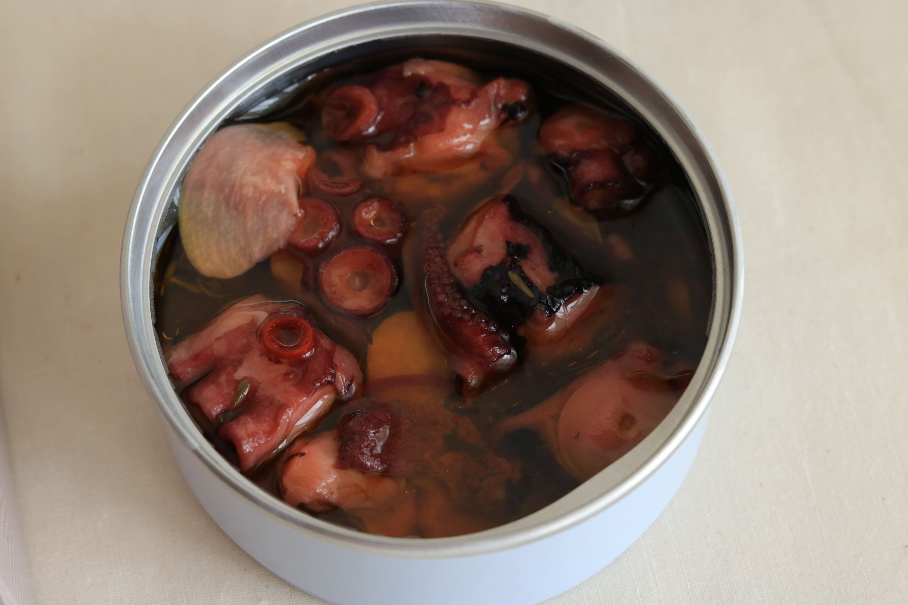原材料名:タコ(京都府宮津湾産)、オリーブ油、にんにく(国産)、塩、赤唐辛子