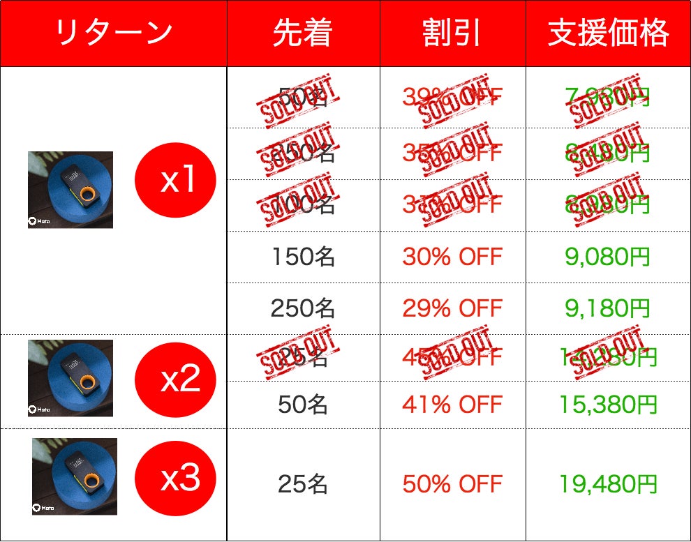 ※想定を上回る皆様からご支援を頂き、量産体制を更に充実させることができた場合、一般販売価格が予定価格を下回る可能性がございます。