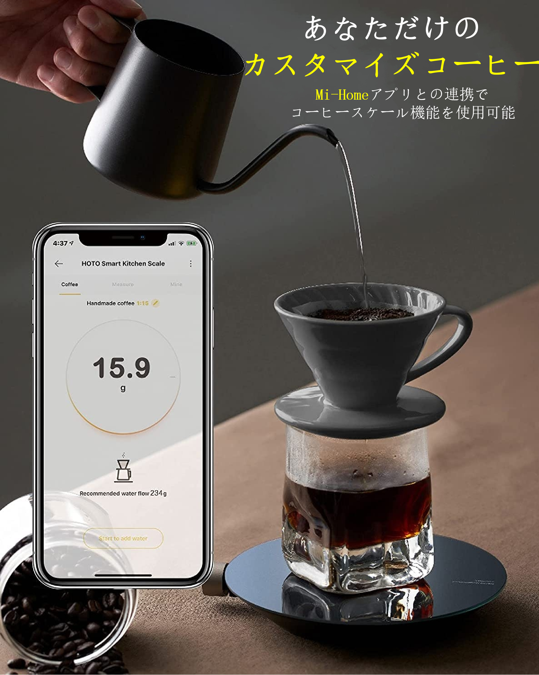 ・コーヒーをハンドドリップする時、測定結果の表示画面への反映が遅く、正確に計量できない・・・