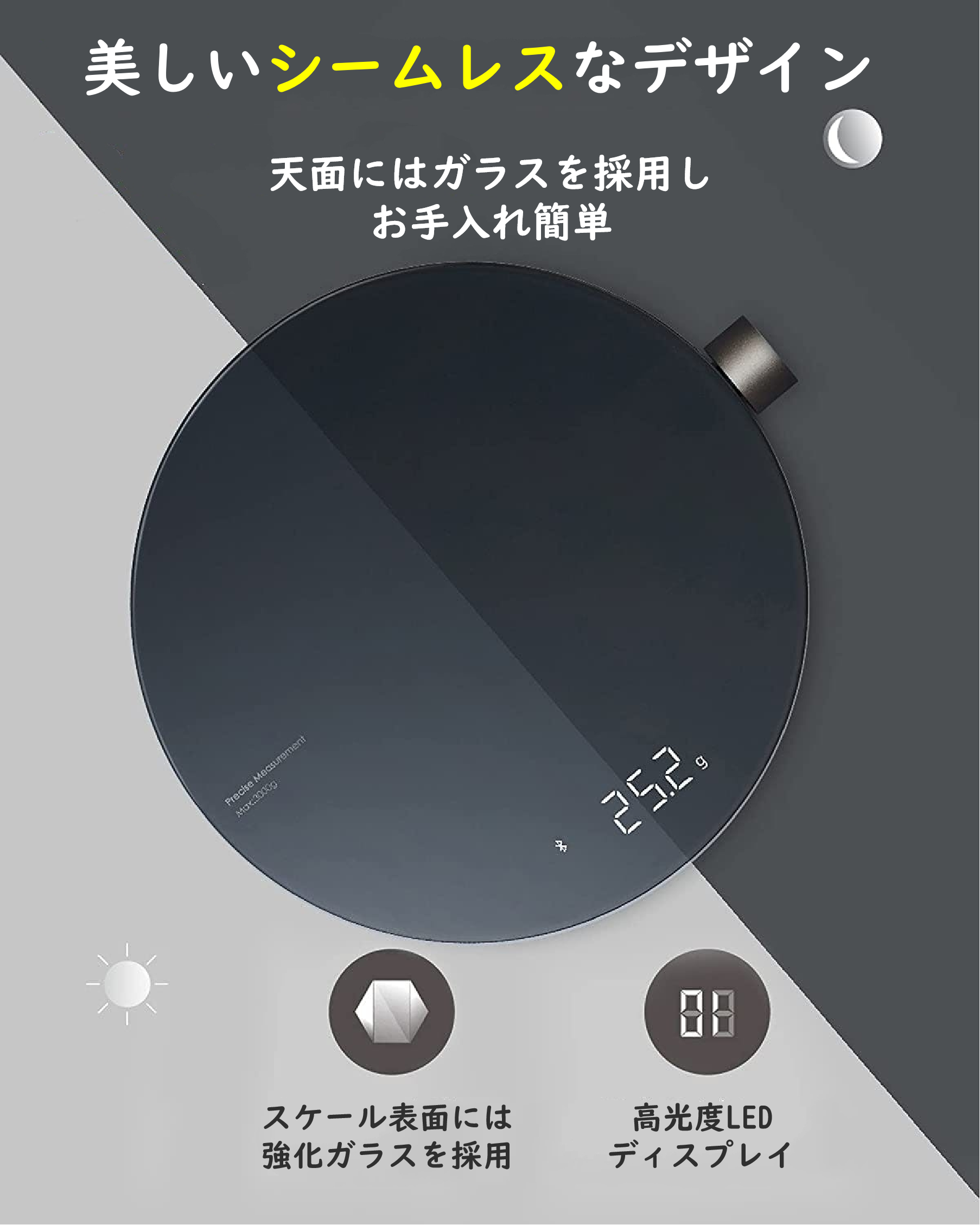 ・コーヒーのハンドドリップのお供に最適!測定結果を素早く表示します。