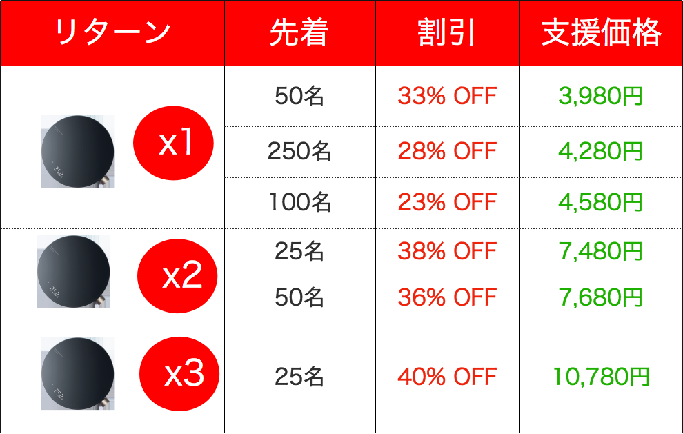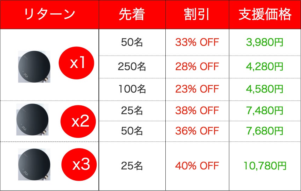※想定を上回る皆様からご支援を頂き、量産体制を更に充実させることができた場合、一般販売価格が予定価格を下回る可能性がございます。