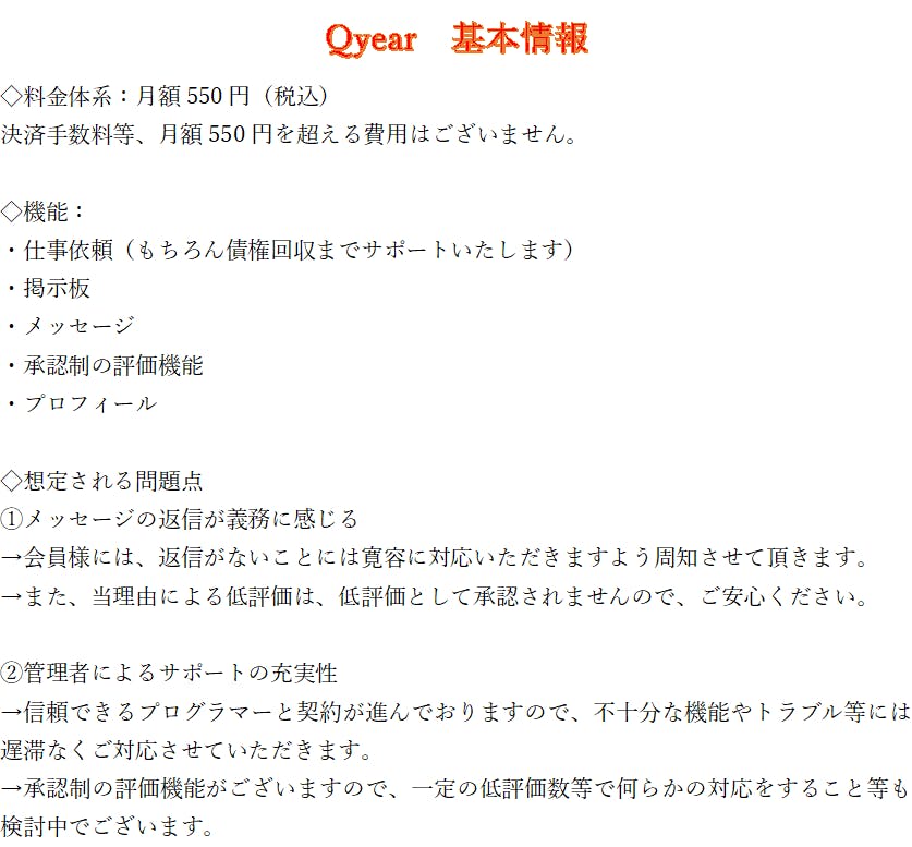 会員制とさせていただいております。月額550円を頂戴いたします。高いと感じられると思いますが、有料にすることによって目的意識の同じ方々が集まるという仕組みにしております。仕事の受発注と交流を主な目的として入会していただくので、見知らぬ人からの連絡も積極的に対応される方が多いと思います。皆様が交流会に参加しているという状況を思い浮かべてみてください。
