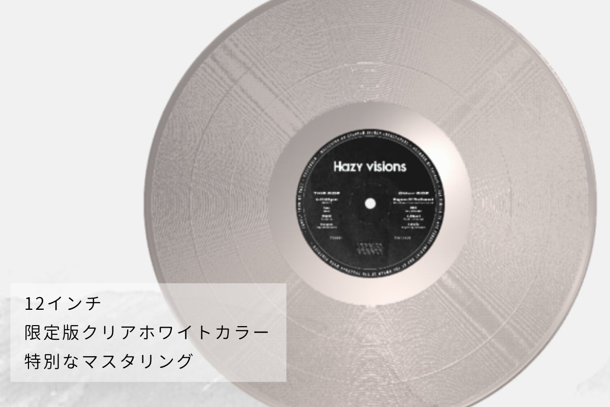 レコードの色はクリアホワイトカラーで、向こうがうっすら透ける様子が"霞んだ視界"というテーマに合っていると思います。