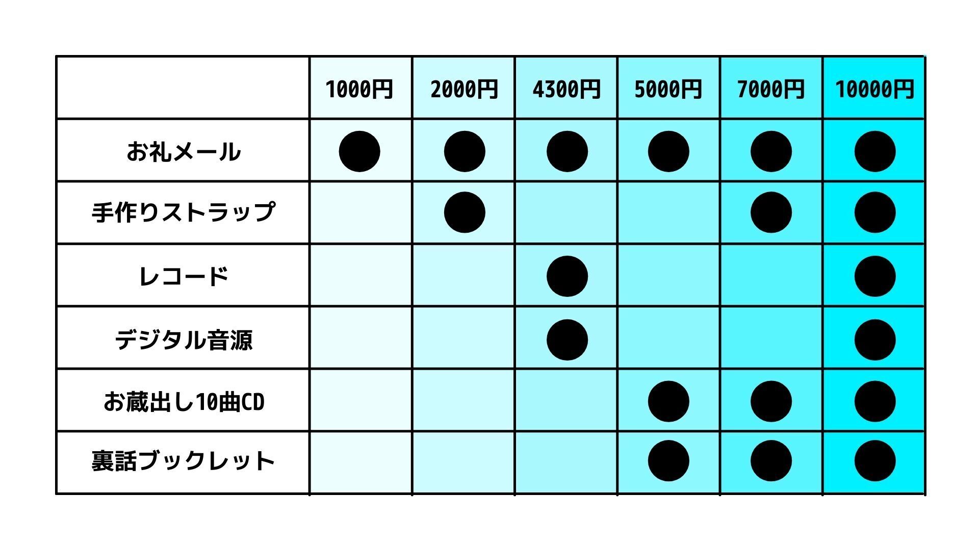 次にレコードはいらないけれど活動を応援してくださるという方のためにいくつかプランを用意しました。