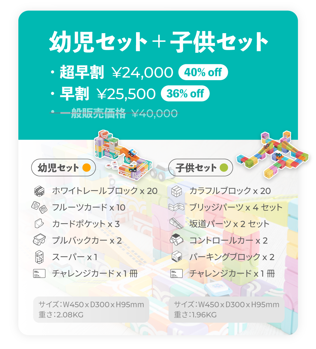 2-4歳の幼児向けセットと5歳以上の子供向けセット2つのシリーズが新登場!子供のレベルや年齢に応じて使用することが可能。