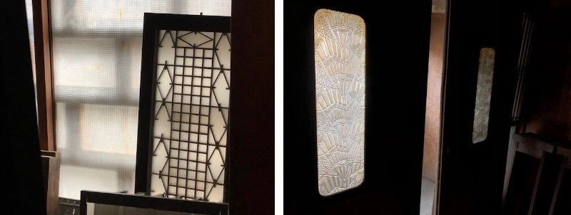 橋本地区にある古いお宅から譲っていただいた組子障子と、アールデコ風デザインのガラスが入った戸も、活かして使います。