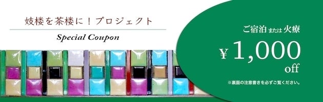 旧第二友栄楼の3軒隣で営業中の「旅館 橋本の香」の宿泊または「漢方エステ天寿」での火療で使えるクーポン券です。