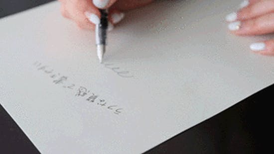万年筆で書くと、にじみにくい、裏写りしない、発色がいいという三拍子揃った紙です。また、ラフな質感に独特な癖があり、病みつきになる書き心地です。