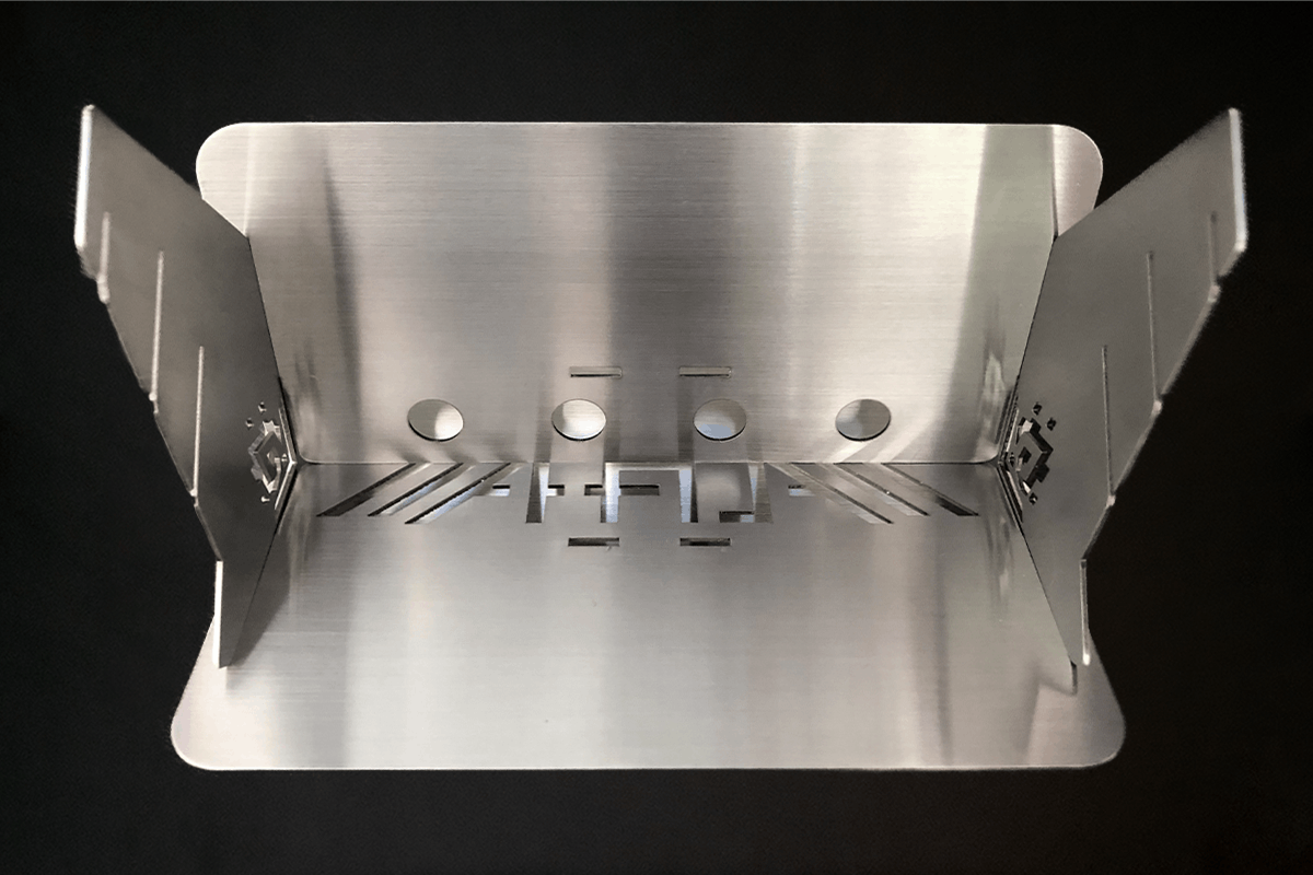 ※ヘアライン加工は焚き火を想定しておりますので焚き火台の各パーツ片面のみの加工となっております。