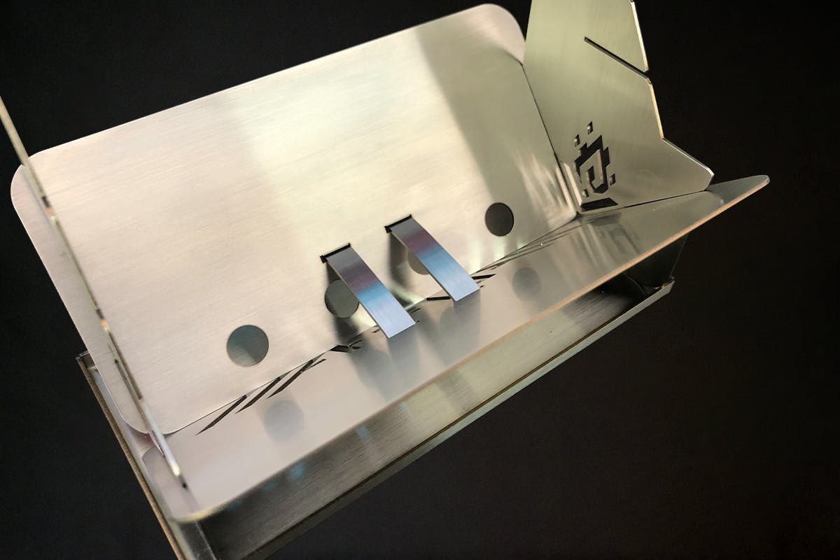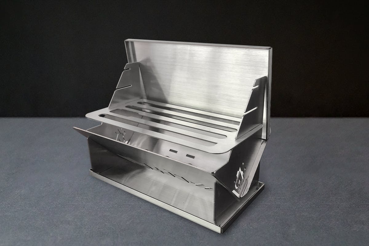 1ミリ厚のステンレスを使用しているので耐食性が高く、長く愛用できる焚き火台です。ステンレスにはクロムが添加されていて、このクロムが酸化し膜を作ります。その膜が鉄の酸化を防ぎ、錆びません。