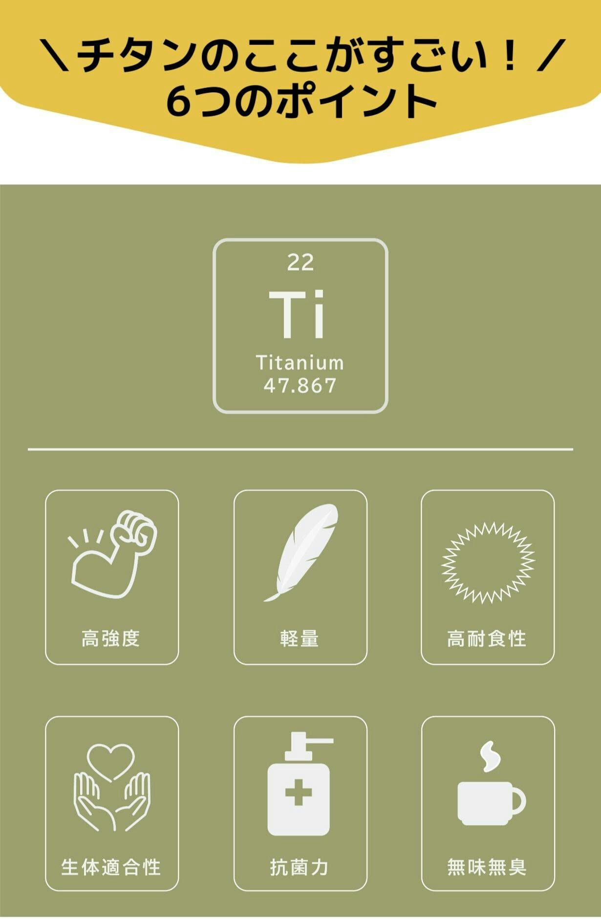 素材:本体(純チタン)/フタ(純チタン、ポリプロピレン、シリコーン)