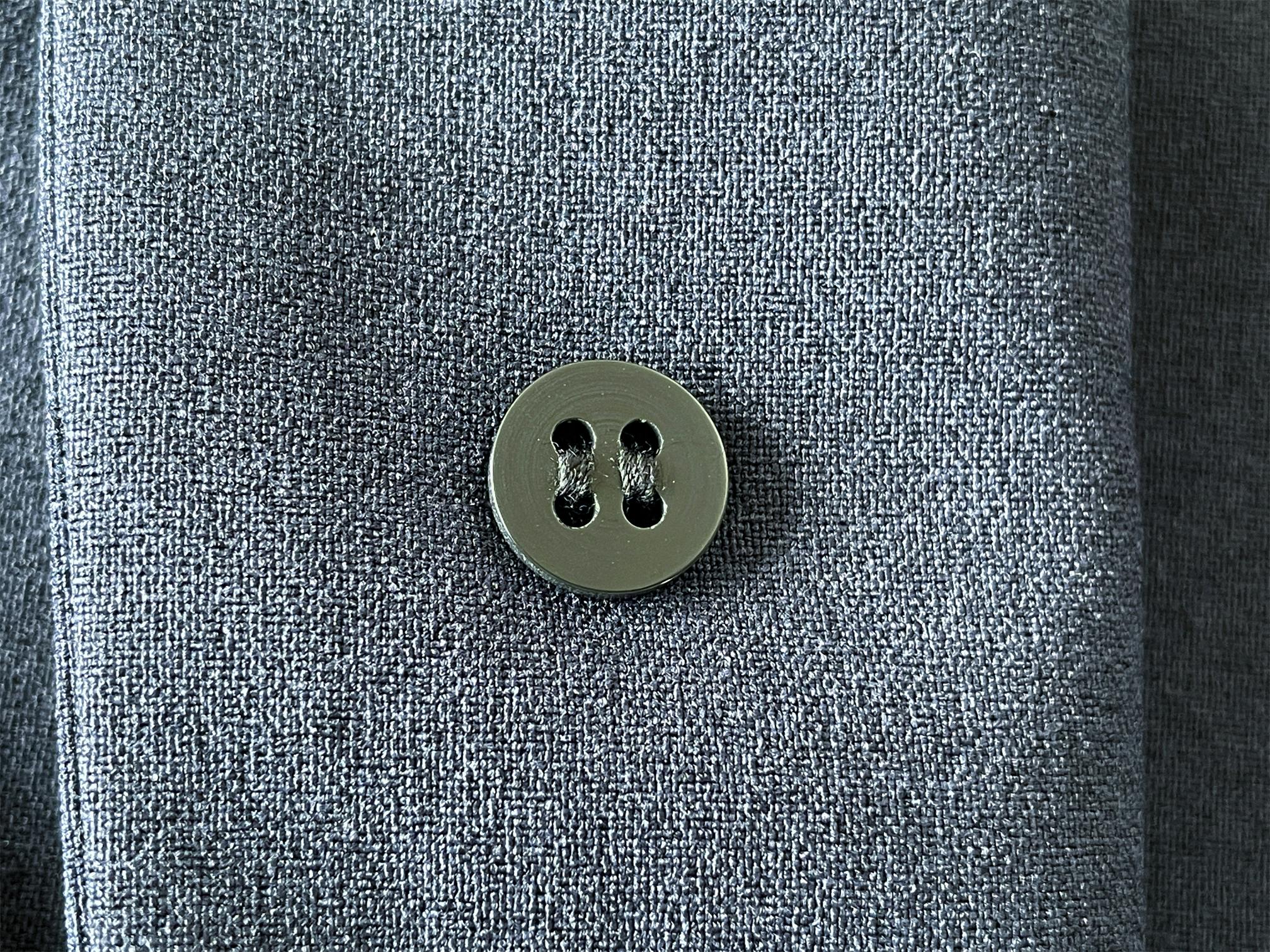 New Normal Jacketをつくるときに気にしたのはボタンです。ジャケットのボタンが取れかかっていたり、取れて無くす体験は非常に残念です。New Normal Jacketのボタンは、とても堅牢で取れにくい工夫をしています。