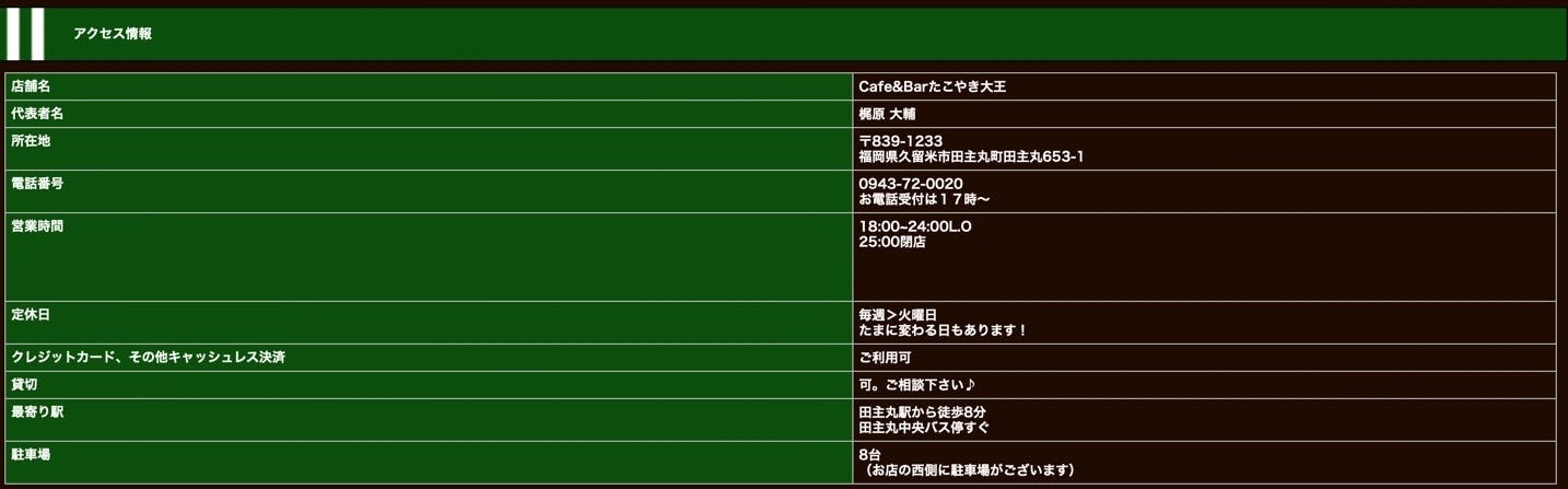 食品衛生責任者:Cafe&Bar たこやき大王 梶原大輔
