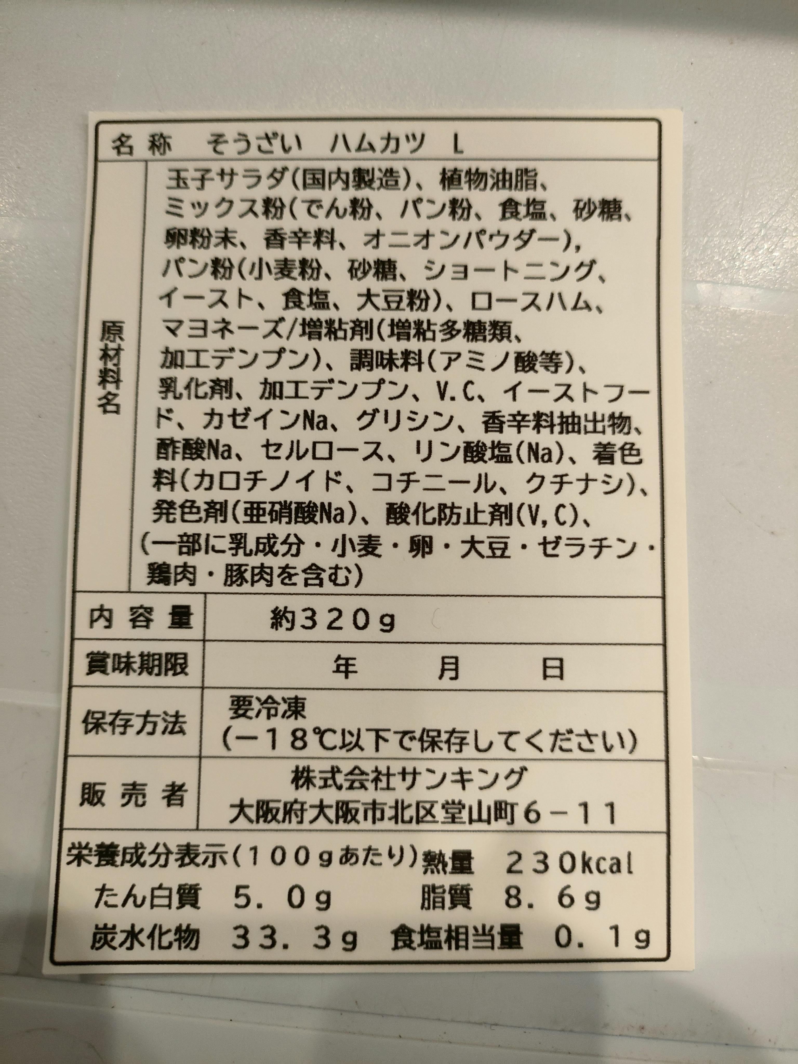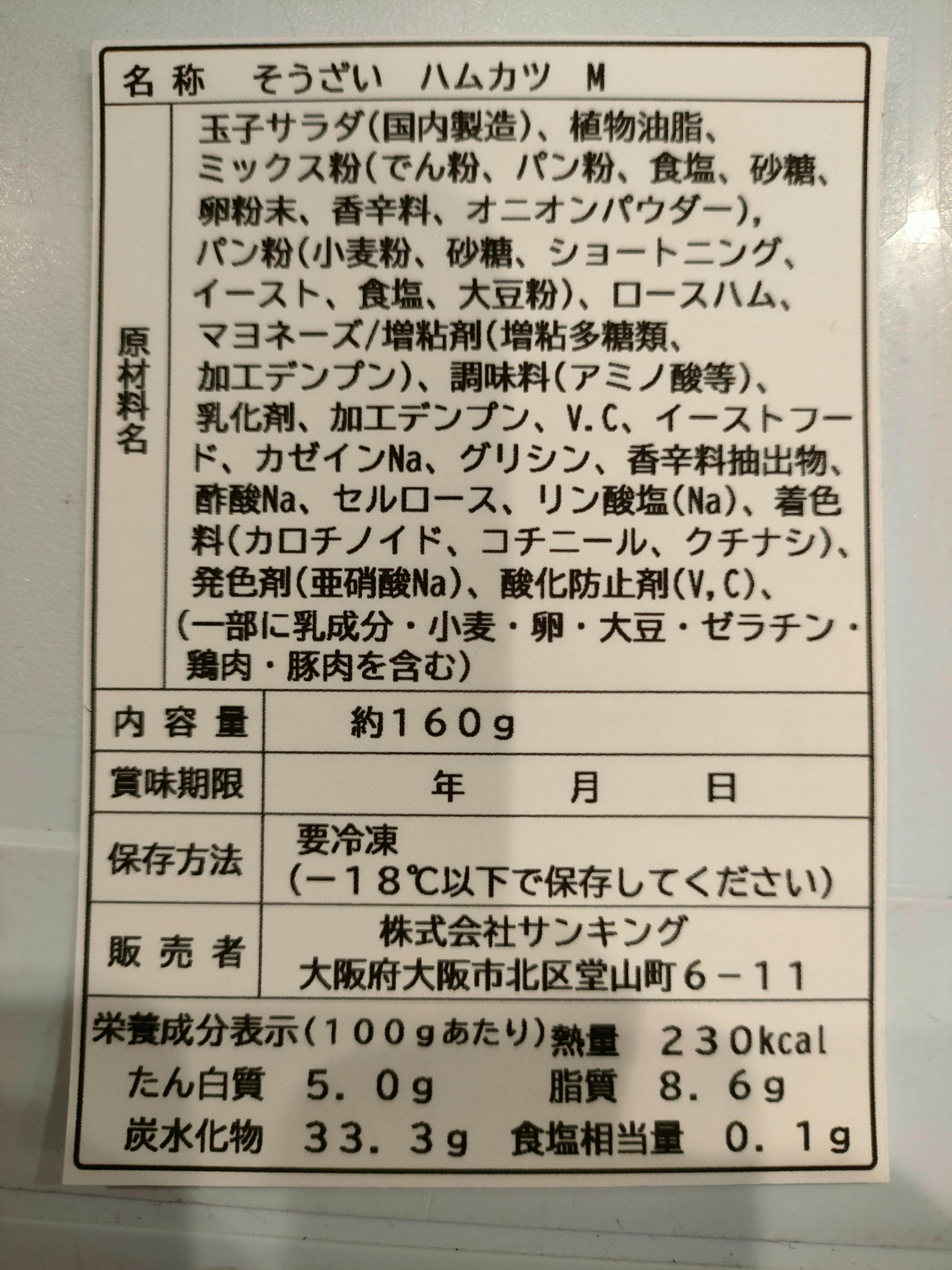 冷凍製品というからにはもちろんまずはハムカツの冷凍から。