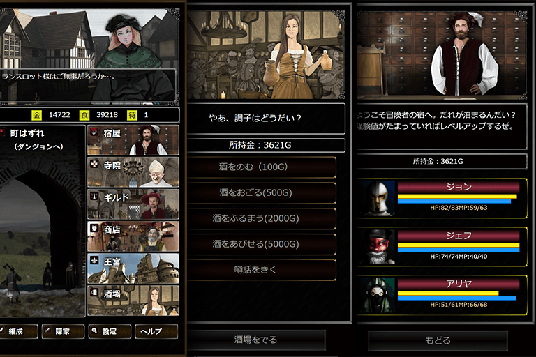 パーティーメンバーとなる冒険者は、町の酒場でリクルートします。腕っぷしの強いドワーフ、魔力の高いエルフ、信仰心に厚いノーム、平均的な能力を有するヒューム・・・どういった冒険者が仲間になるかは、運次第です。