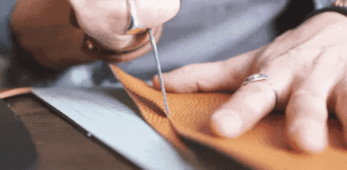 A. 品質をチェックした本革を使用しています。また、縫製やカッティングなど100以上の精巧な工程を手作業で施しています。