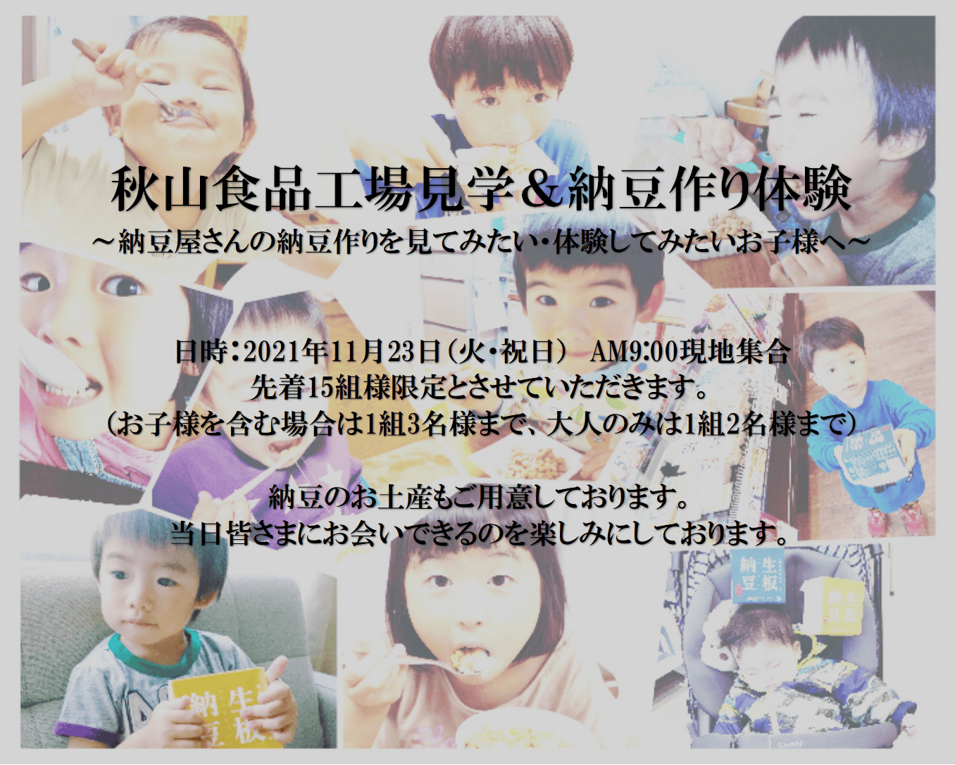 【秋山食品工場見学&納豆作り体験】(最寄駅からのバス送迎・納豆のお土産付き)1組様分