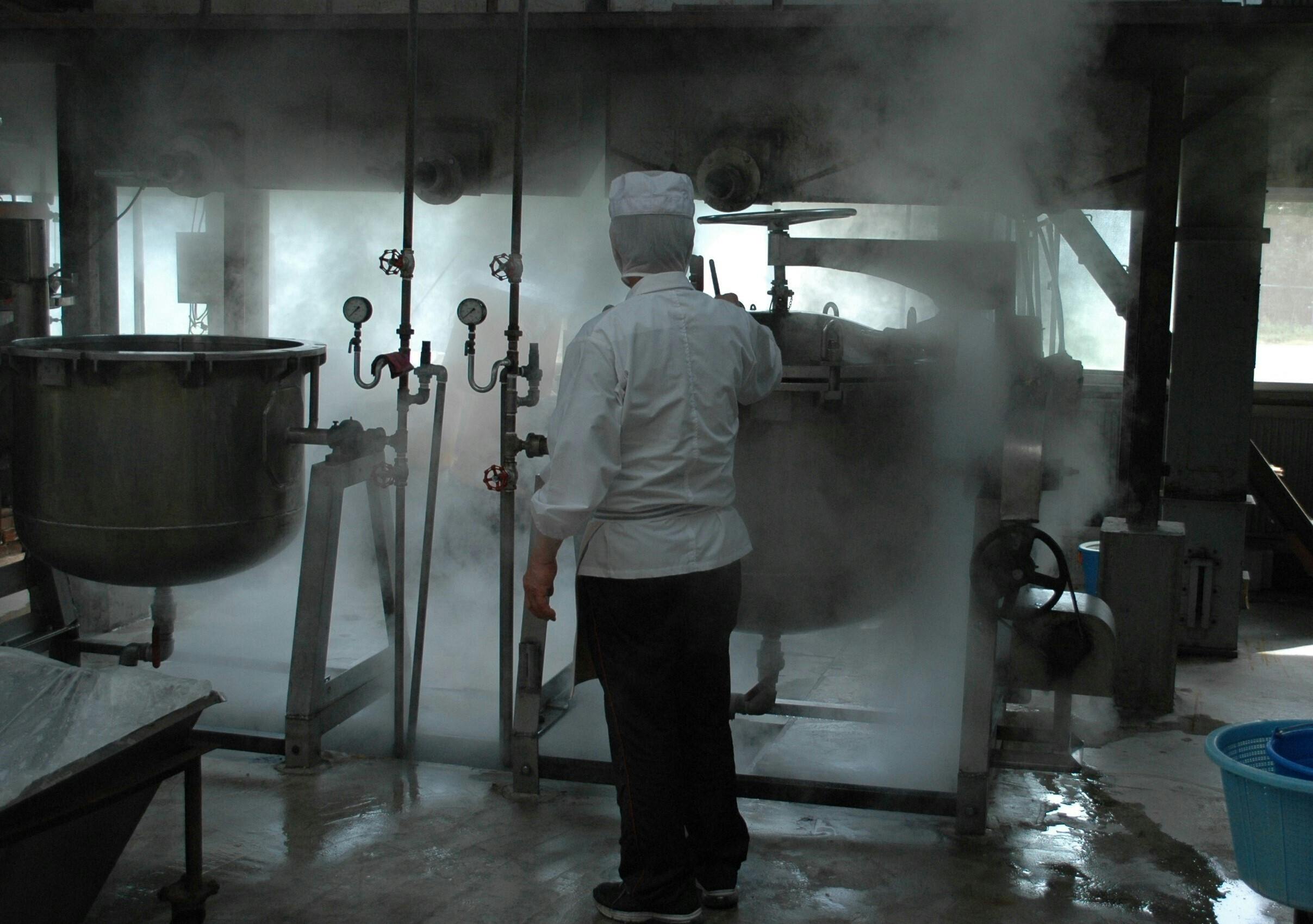 納豆は十分に浸水させた大豆を専用の釜で一気に蒸かし上げたあと、納豆菌をまんべんなく混ぜ込み、室(むろ)という場所で納豆製造工程にとって一番肝となる「発酵」をさせます。