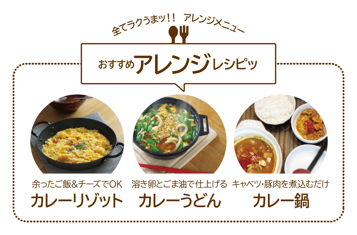 ご自宅にある濃縮麺つゆを使い通常の「カレー蕎麦」としてもお楽しみ頂けます。