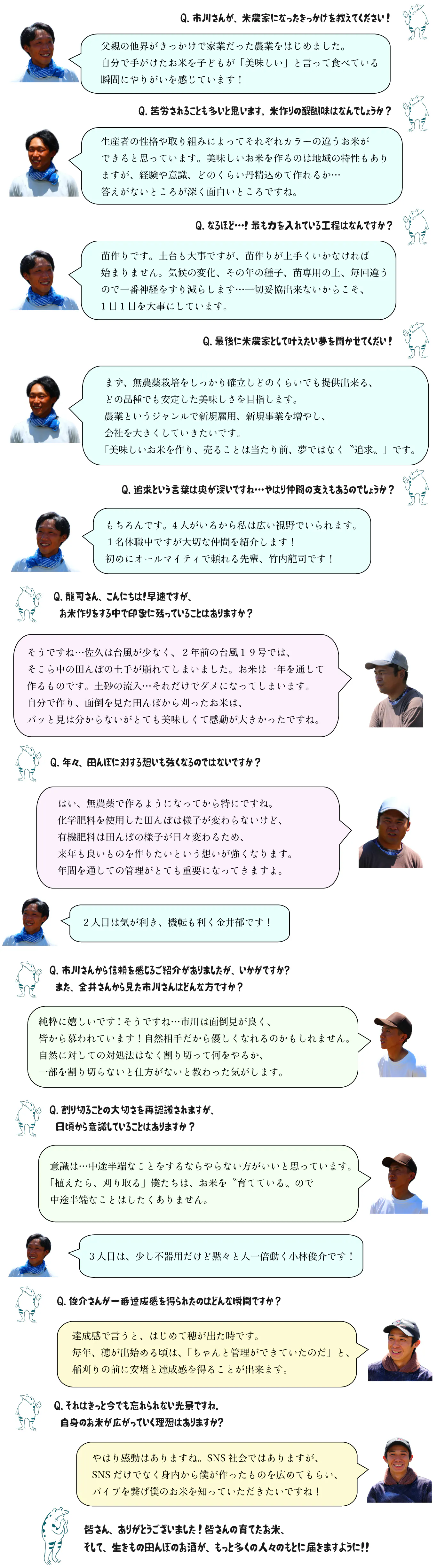 今後も生産者である市川氏をはじめとした仲間たち5名のお米作りに対する熱い思いを、より多くの皆様に伝えていきたいと思います。