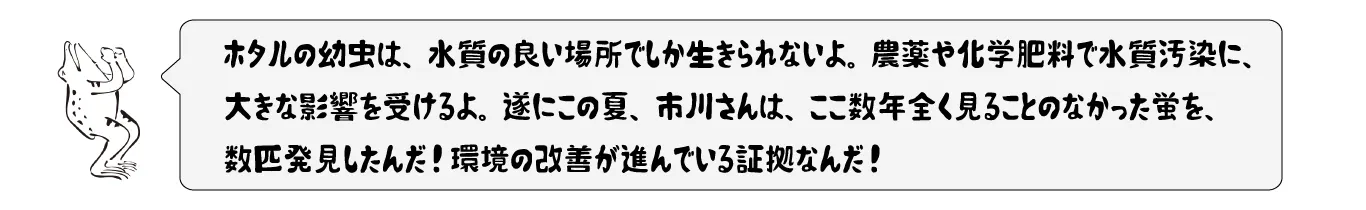 今では見られなくなってしまった蛍が飛び交う美しい田園風景を取り戻すために…