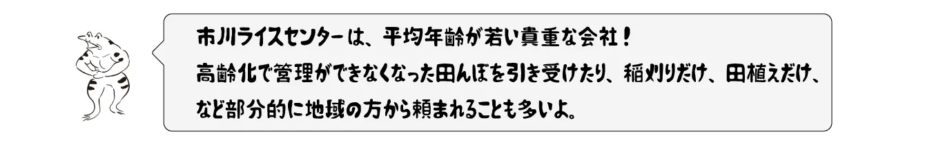 市川ライスセンターに勤務するのは、市川さん(33歳)をはじめ、この土地で生まれ育った20代後半から30代の若者です。